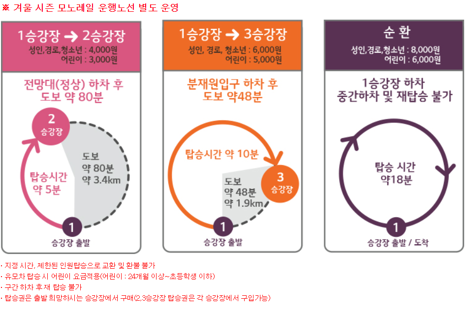 ※ 겨울 시즌 모노레일 운행노선 별도 운영