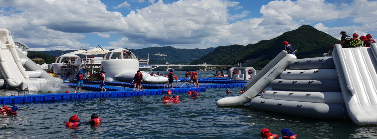 '가평 캠프 통 아일랜드'에서는 다양한 수상 놀이기구를