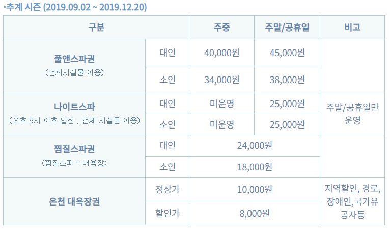 · 일일 영업 종료시간(퇴장시간)은 대욕장 마감시간을 기준으로 합니다.