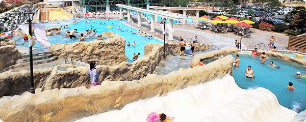 인공 폭포수로 둘러싸인 동굴탕 및 연인탕으로 구성된 수공간으로써