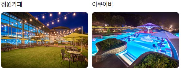 카페, 푸드코트, 아쿠아바, BBQ존, 수영복 매장, 수유실, 세신실, 렌털 샵, 의무실 등