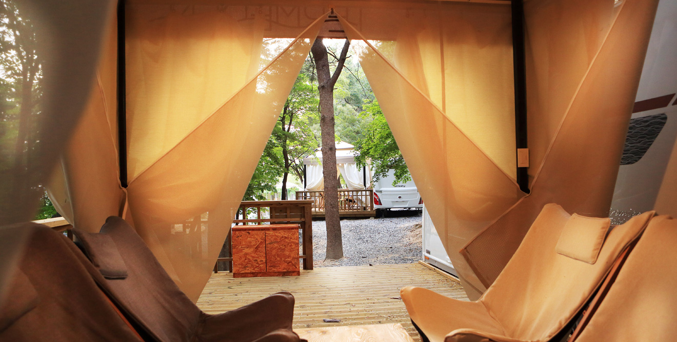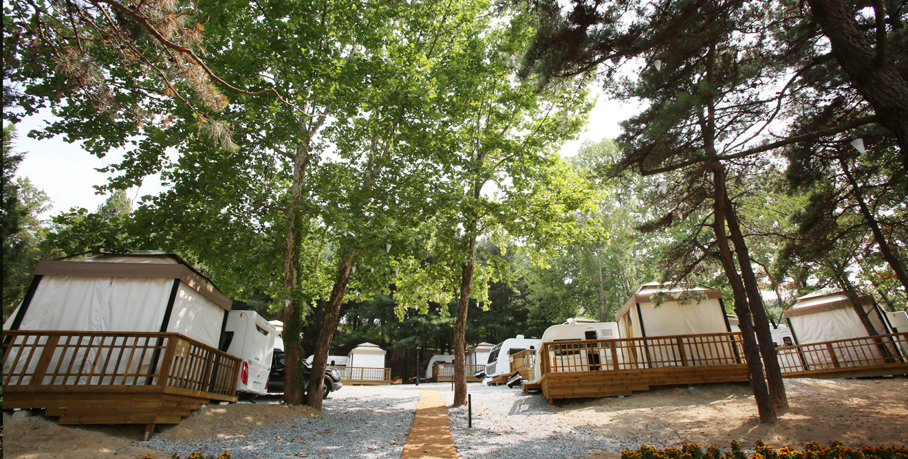 숲 속에 최고급 카라반과 전통한옥을 마련하여 피톤치드 삼림욕까지 겸하실 수 있는