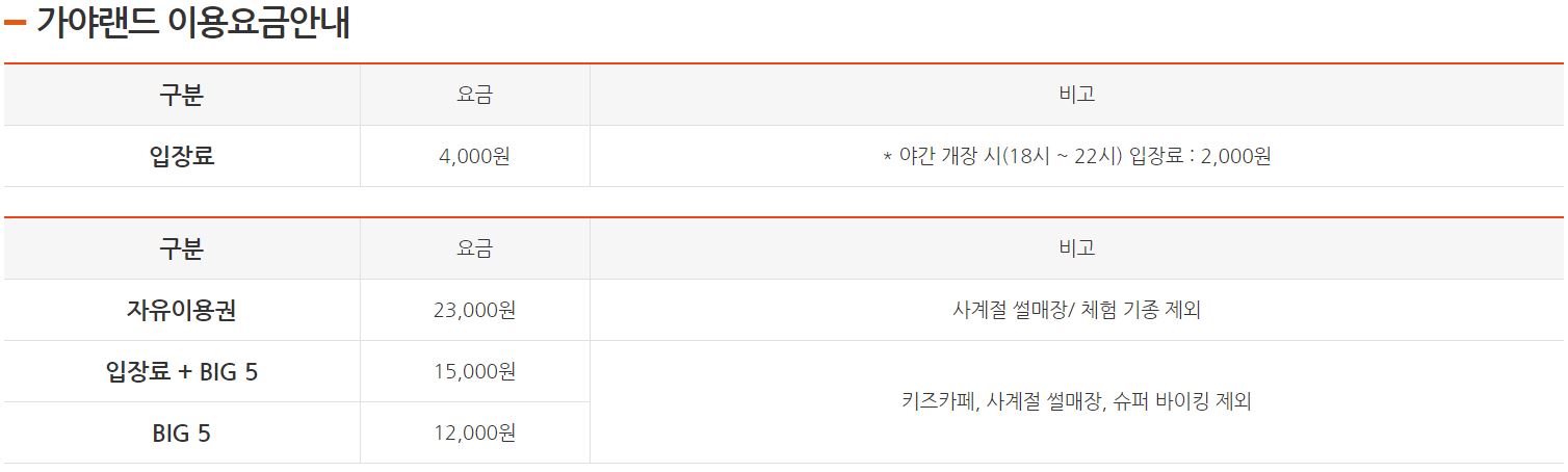김해 가야랜드 입장권 및 이용안내
